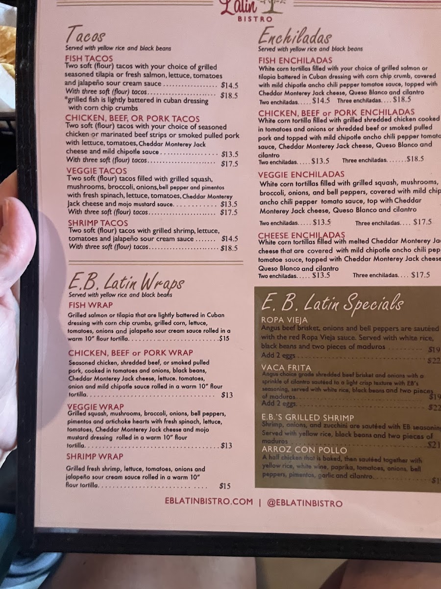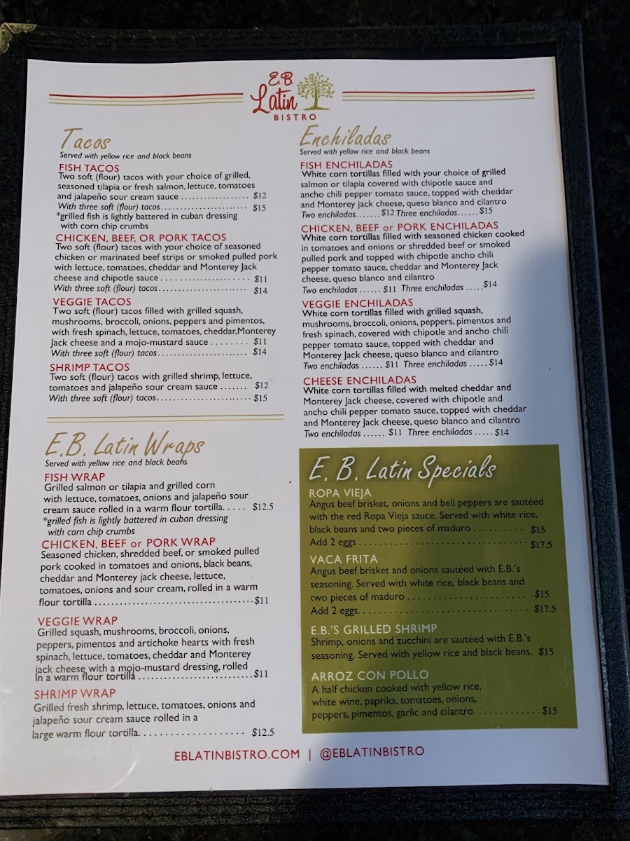 Pair your meal with refreshing beverages like Mexican CocaCola or Pineapple Jarritos for a truly delightful dining experience. With fantastic service and a cozy atmosphere, E. B. Latin Bistro has quickly become a treasured gem for many diners.